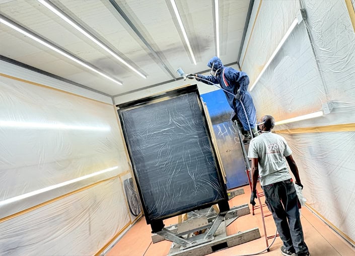 Nuestra cabina presurizada está diseñada para garantizar la máxima calidad en cada aplicación. Este espacio cerrado y aislado, mantiene una presión controlada que evita la entrada de polvo y agentes contaminantes, asegurando un entorno limpio y seguro. Este sistema permite obtener acabados libres de imperfecciones, y optimiza la eficiencia del proceso de pintado.